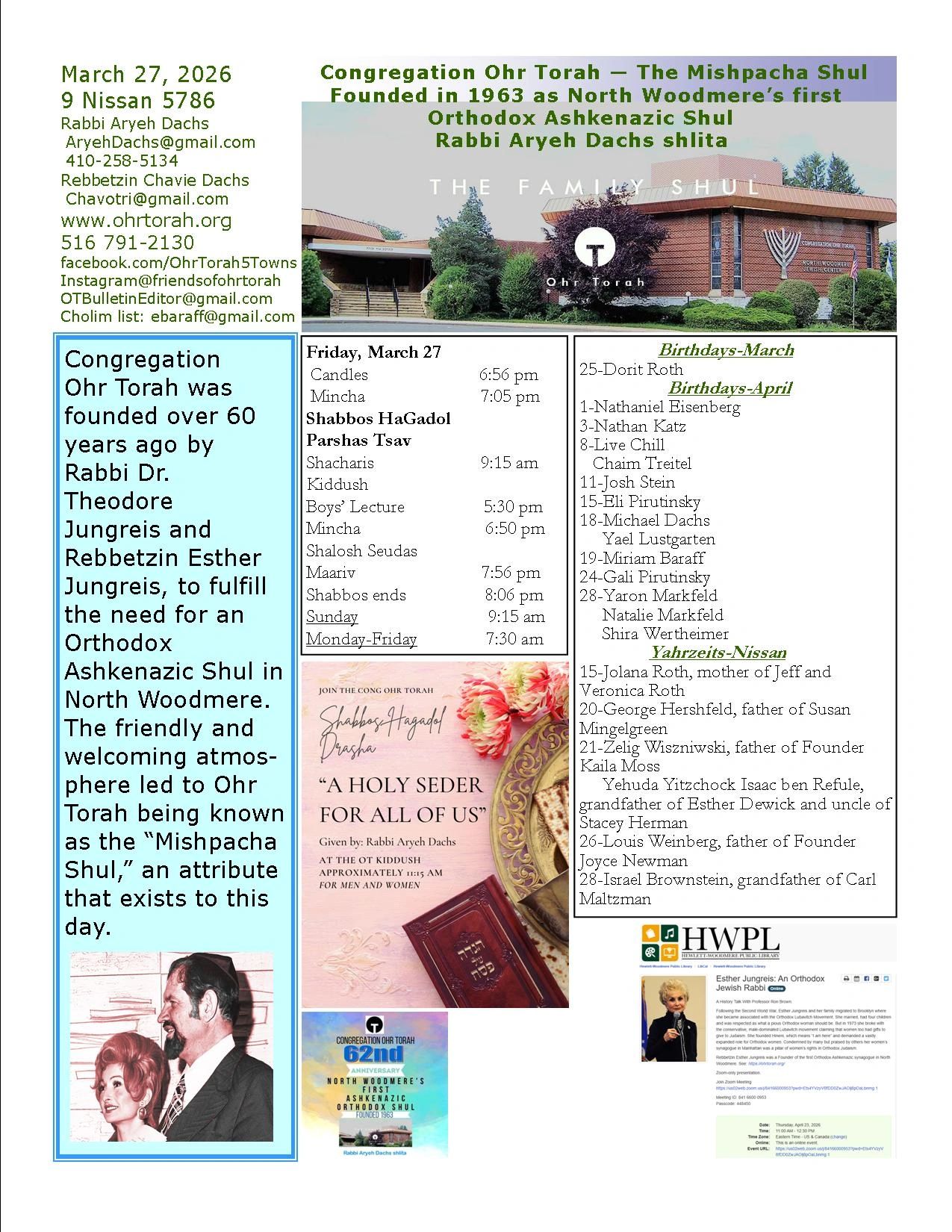 OT Special Events Photos: Purim, Parent Child Learning Finale, Rep. Solages Honors OT